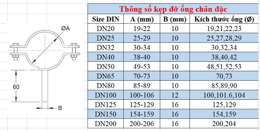 Thông số kẹp giữ ống: